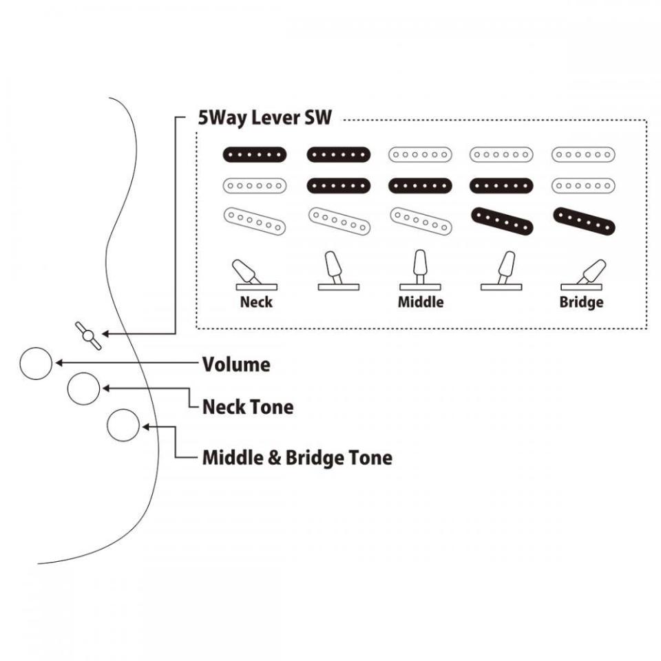 Controls:1Volume, 2Tone (Neck / Middle & Bridge), 5Way Lever SW