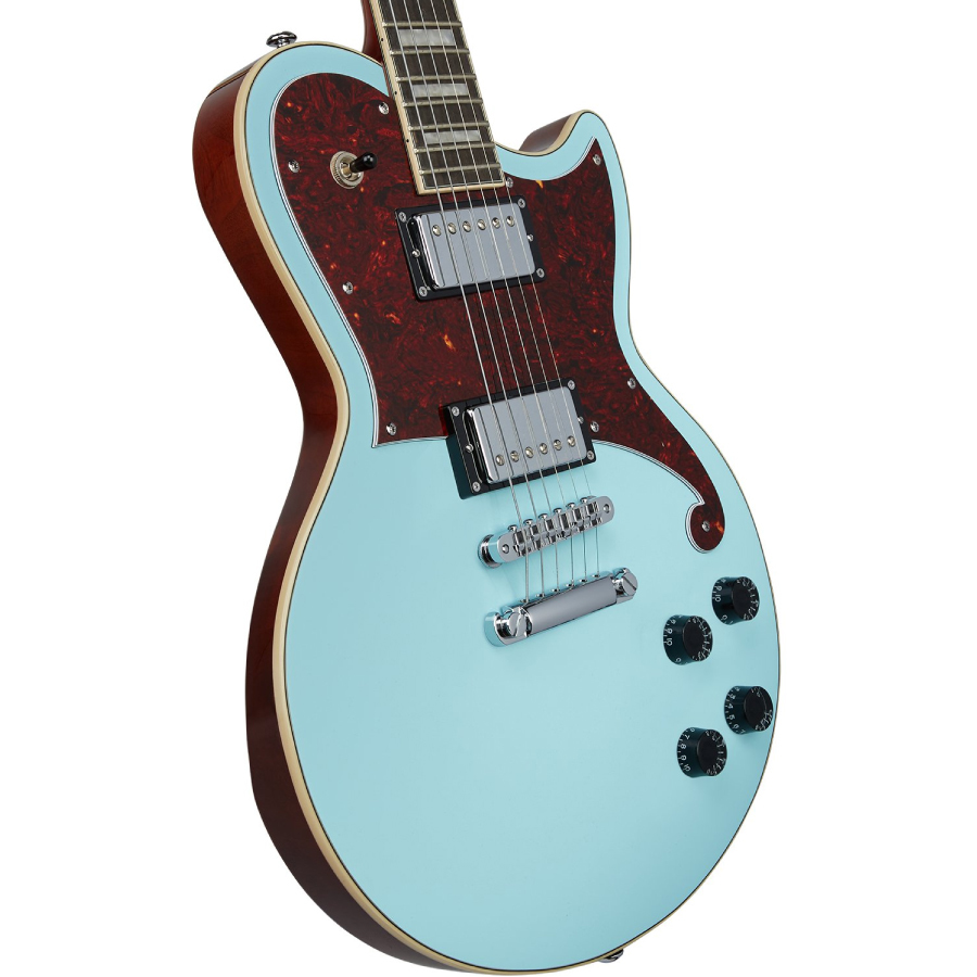 D'Angelico (ディアンジェリコ) の「Premier Atlantic」は、オリジナルの13.25インチ (336.55mm) 幅のシングル・カッタウェイ・シェイプにエスカッションを用いてハムバッカー・ピックアップを2基搭載したモデルです。