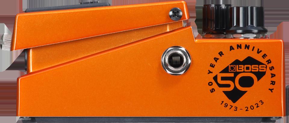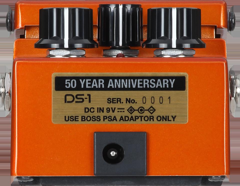 2023年、BOSSブランド設立50周年を記念し、メタリック塗装をほどこした筐体に銀ネジと金色のノブ・キャップ、記念エンブレムをあしらった特別モデル DS-1-B50A をリリースします。