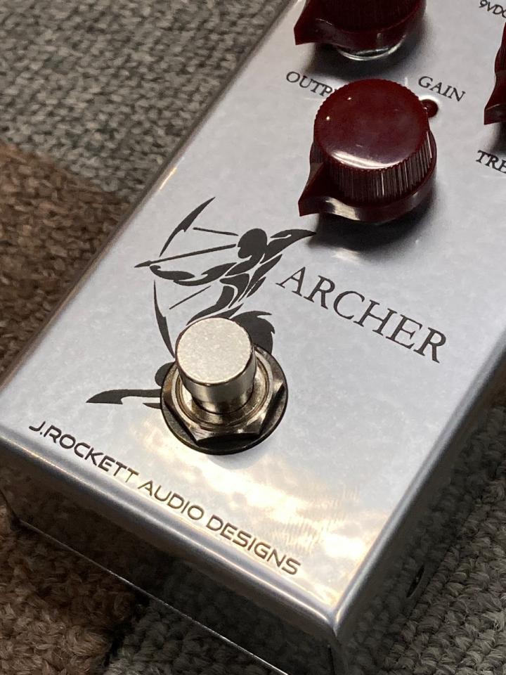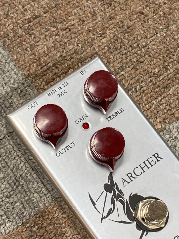 アーチャーは、他の楽器の音に埋もれないようデザインし、十分なヘッドルームを持つ多彩なオーバードライヴ/ブースター・ペダルです。特にアウトプット・コントロールは非常に効果が大きいので、音量に気を付けてください。