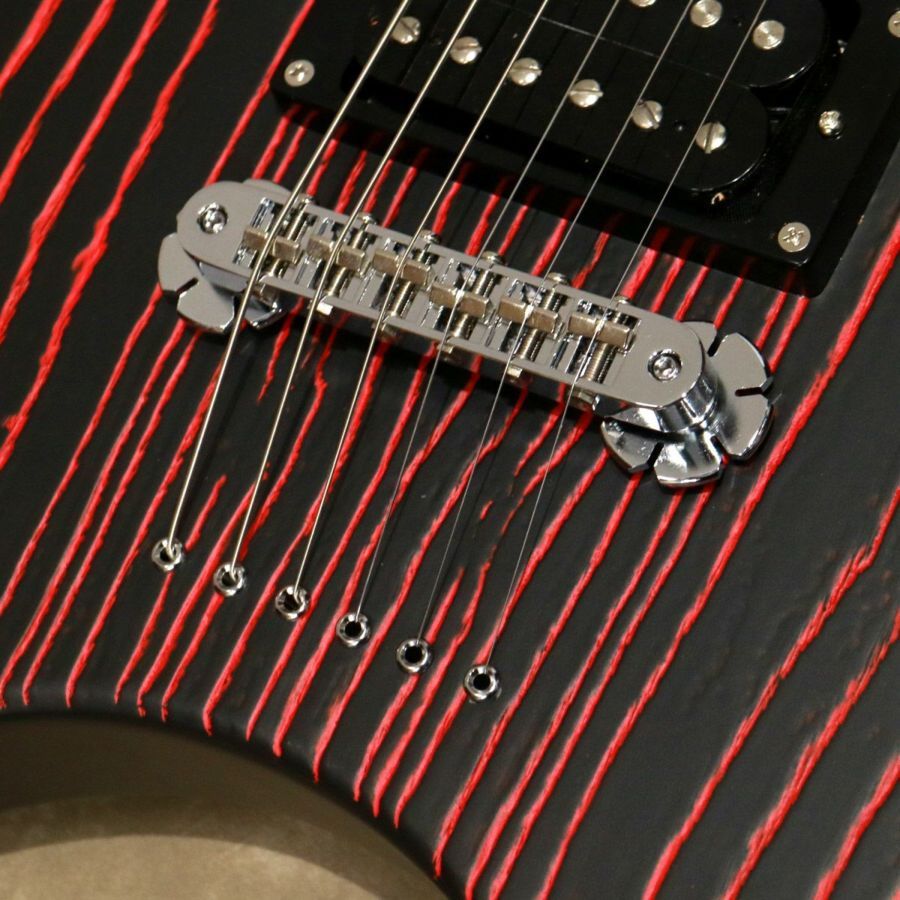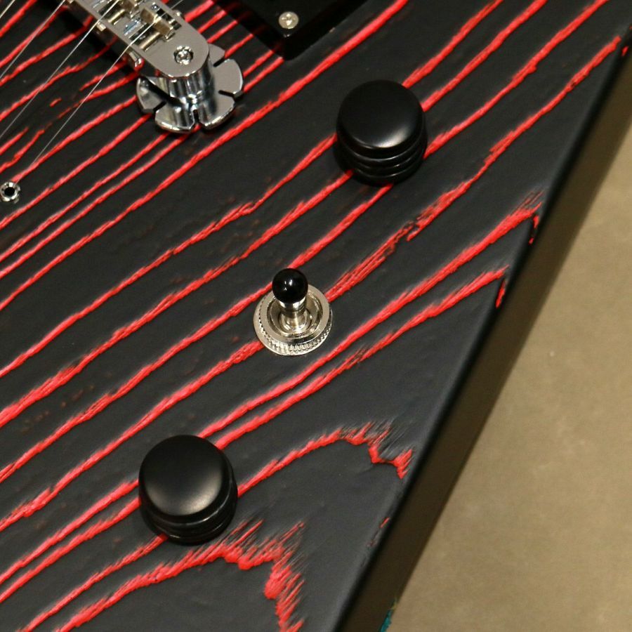 ボディー・トップのアッシュは、サンドブラスト加工により、柔らかい部分が削り落とされ、立体的な木目が現れています。