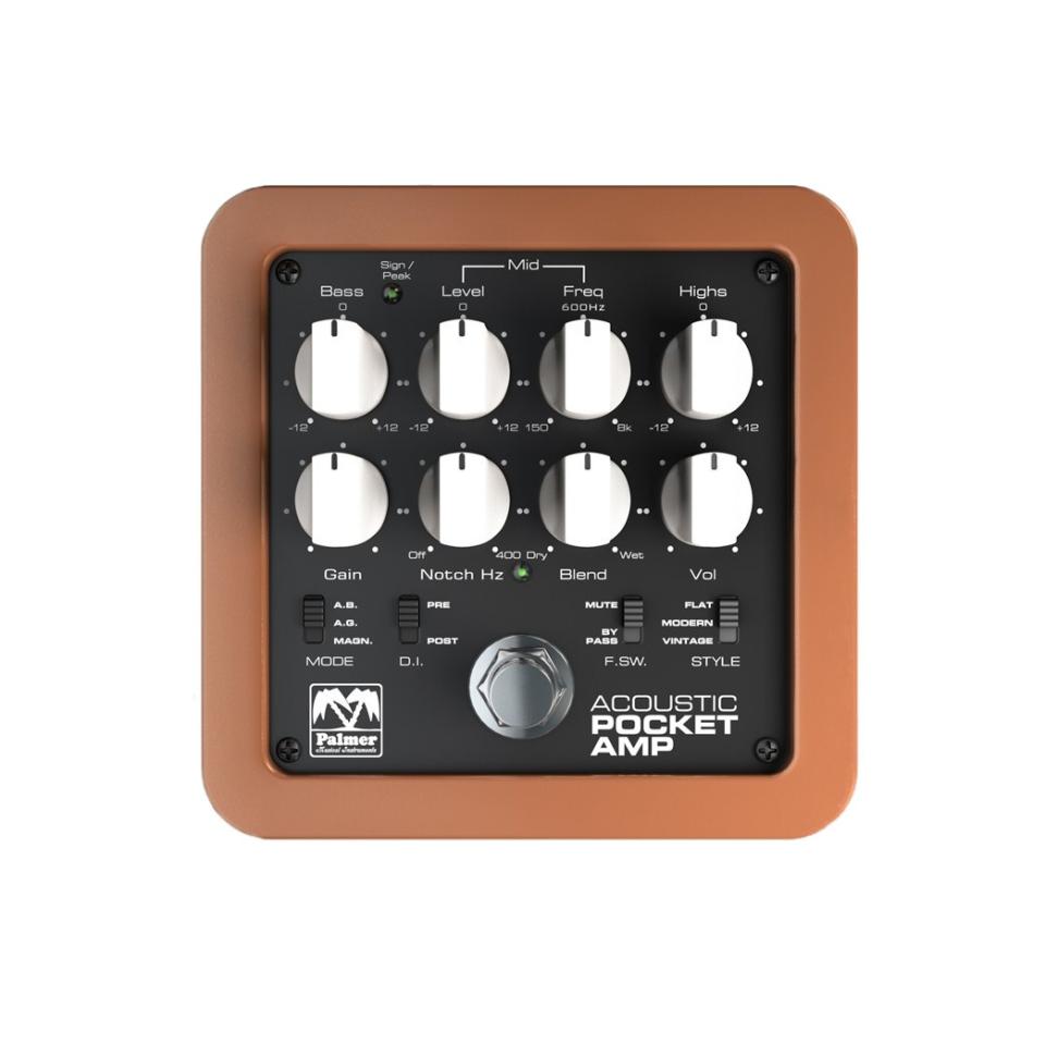 Pocket Amp Acoustic は、多彩なサウンドメイキングが可能なアコースティック・弦楽器用ペダルプリアンプです。