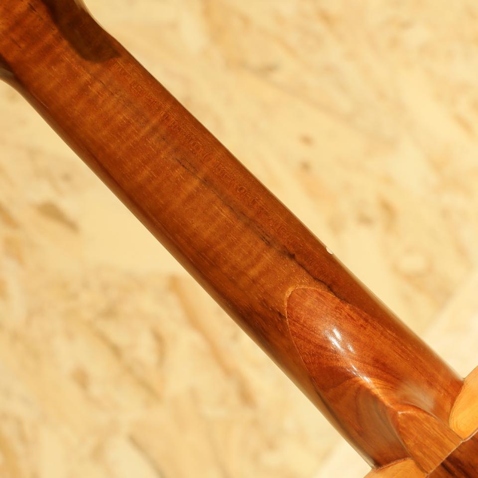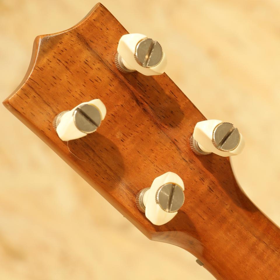 1916年にサミュエル・K・カマカが創業して以来、ハワイアンウクレレメーカーのトップブランドとして地位を君臨し続ける「カマカウクレレ」。「If you make instruments and use the family name, don't make junk.(もし楽器を作って、家系の名前を付けるなら、ジャンク品は作るな)」という創業者の言葉通り、ハワイの文化の中で培われた職人達の技術と精神、徹底した品質管理より変わらない音を作り続け、100年以上経った現在も失われることなく受け継がれ多くのプレイヤーに愛されています。本器はホワイトラベルのソプラノモデル1980年-1990年代製USED品です。ボディ、ネック、指板&ブリッジに至るまでウッドマテリアルは全てハワイアンコア材を使用。デカールロゴ、シャーラー製フリクションペグ。1969年より2000年のラベル変更が行われるまで採用されていたホワイトラベルの中でも後期のモデル。伝統的なスタイルのソプラノサイズは小ぶりで抱えやすく、また愛らしいルックスは飾っているだけでも惚れ惚れします。太くたっぷりとした音量。甘くコロンとした愛らしい響きは格別で、他メーカーには真似できない独特のトーンを持ちます。バック面上部に杢目に沿った筋のようなものがございますが貫通はしておらずご使用に影響はございません。同じくバック面センターシーム下部に割れ補修がございますが目視ではほとんどわからないような綺麗な仕上がりです。トップ面1弦側指板横にストラミング跡がございますが光の加減でわかる表面上のもの、その他ネック周りの状態も良く、プレイコンディションも良好な1本。トップ&バックにはうっすらと虎杢の見える美しいハワイアンコアモデル。憧れのハワイアンウクレレにアップグレードをご検討の方には是非オススメです。オリジナルハードケースが付属します。