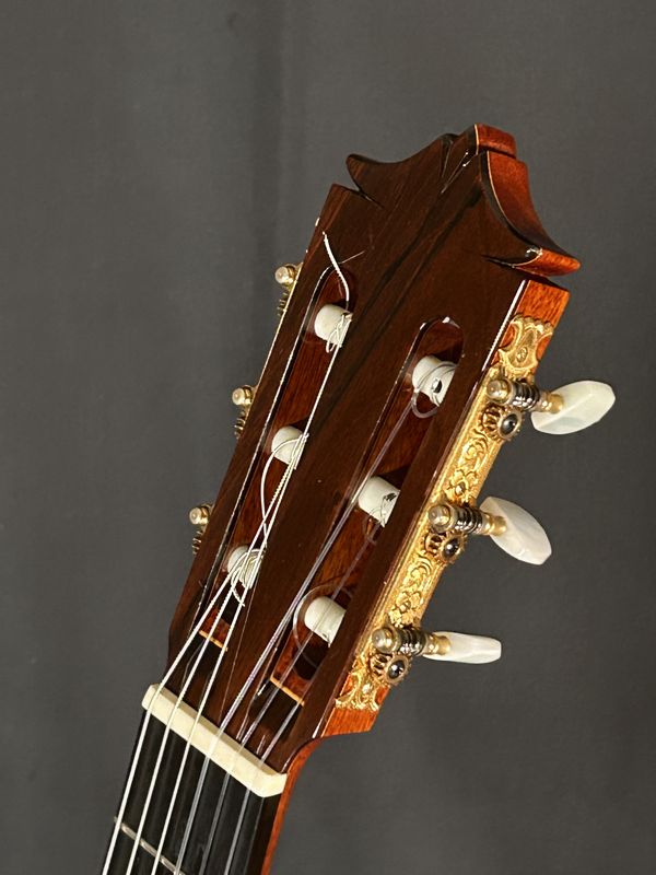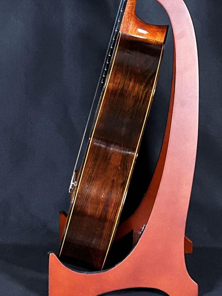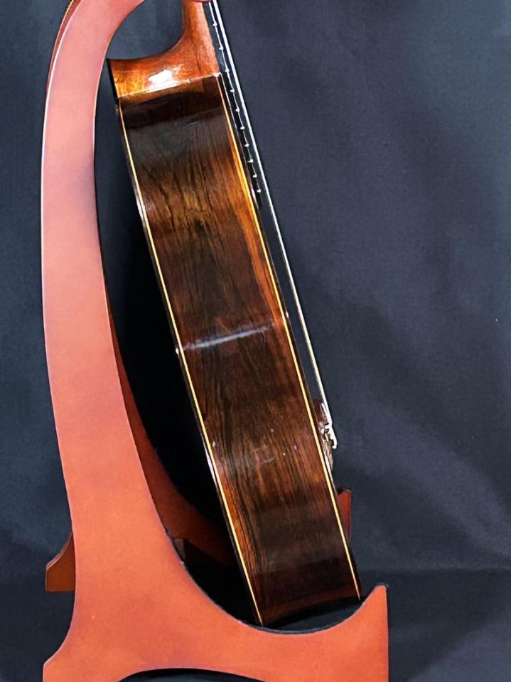 しっかりとした芯があり、弦の張り感は中庸で鳴らし易いです。ハカランダ特性が強すぎる硬すぎる音質ではなく、粘り感とエアー感、強い芯のある、良い音作りです。
