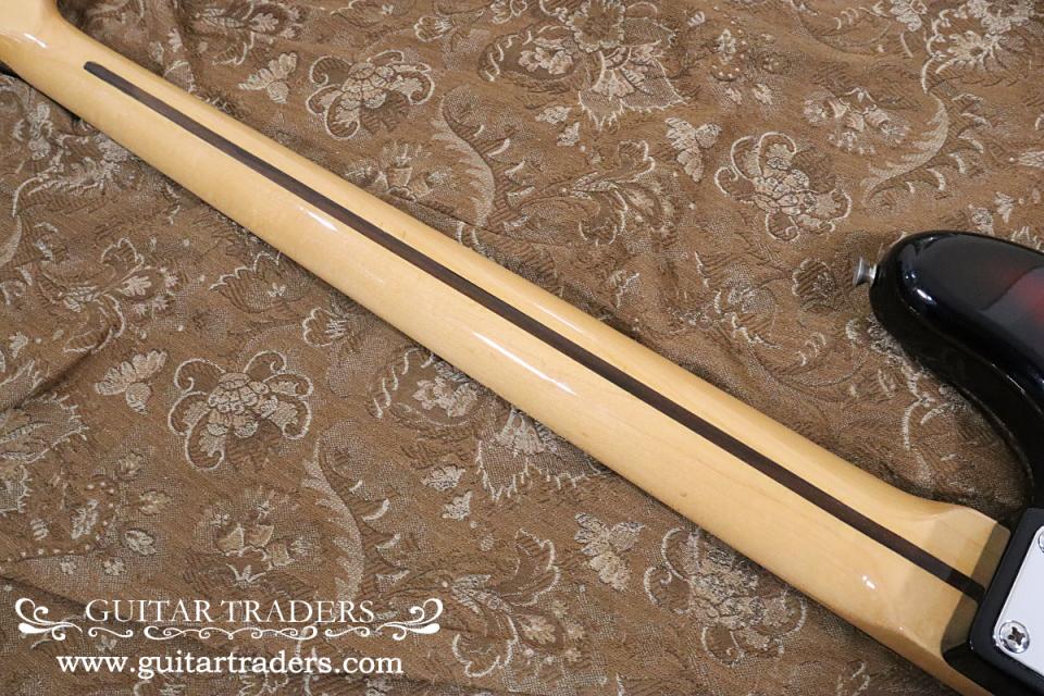 メイプル・ワンピース・ネックに、特徴的なスリー・トーン・サンバースト、ピックガードはブラックとなっています
