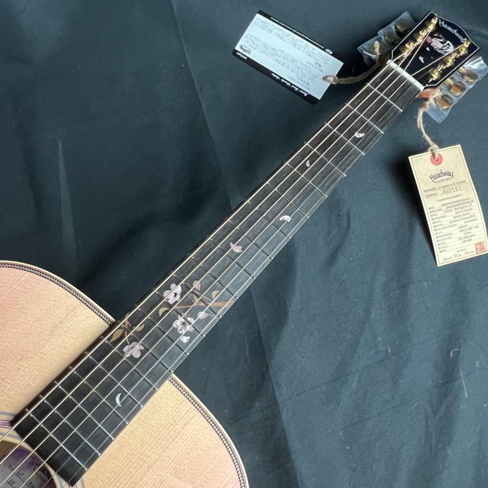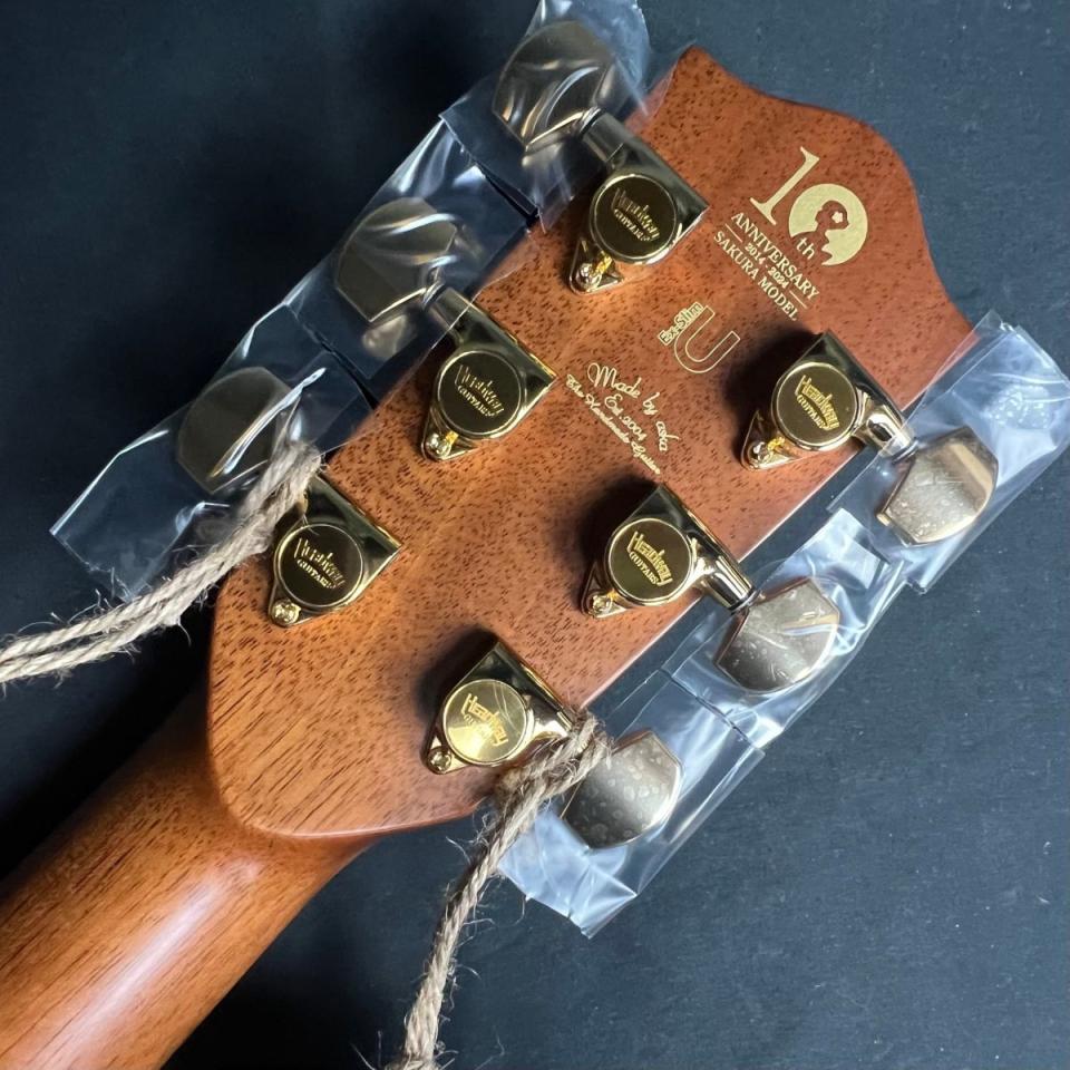 Headwayの桜ギターでは初の試みとなる縦方向に広がるグラデーションカラーを採用。沿道に広がる桜並木のように、あたたかな桜色がボディを包み込みます。また、塗装にはパールカラーが含まれており、見る角度によってきらりと輝き多彩な表情を見せます。桜と同じく和の心を象徴する存在として、天神には「鶴」のモチーフをデザイン。10周年を迎えた桜モデルを渡り鳥である鶴になぞらえ、どこまでも高く、そして世界中へ羽ばたいて欲しいという願いを込めました。