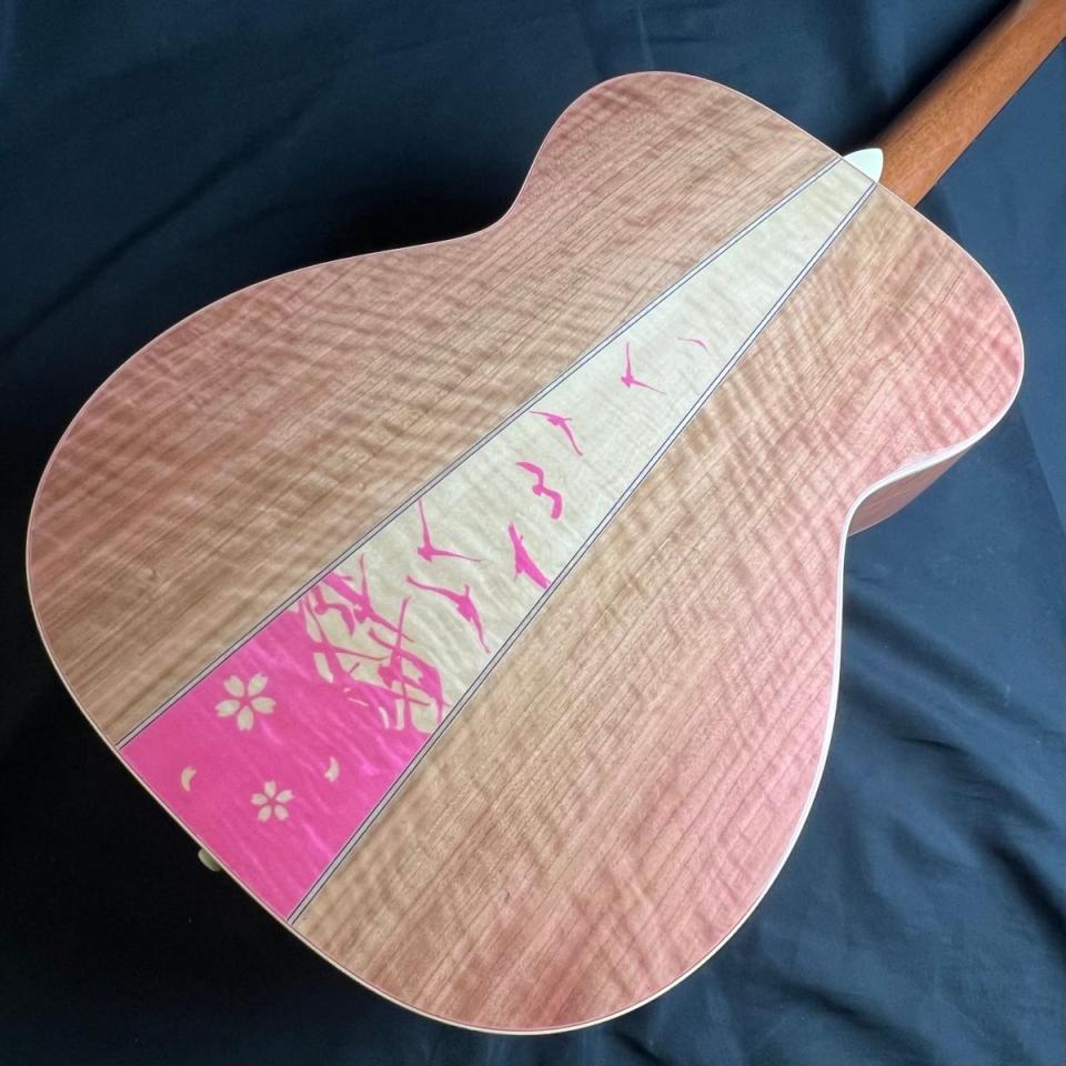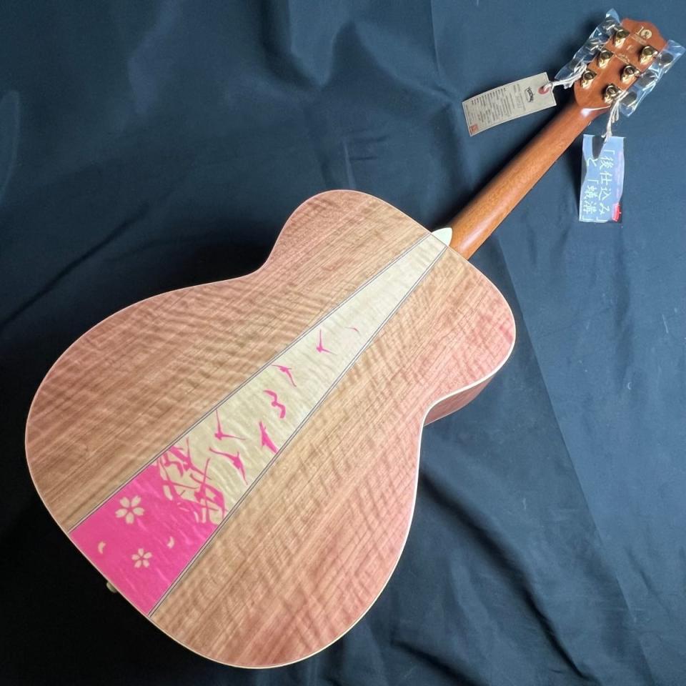 しなやかな杢目を持った山桜(ヤマザクラ)をサイドバック材として使用。非常に硬質な特徴がありローミッドにピークを持ちつつも、桜材特有の甘いサウンドを奏でます。裏板は同じく国産材の栃(トチ)を使用した3ピース構造になっており、飛び立つ鶴の一群が描かれます。