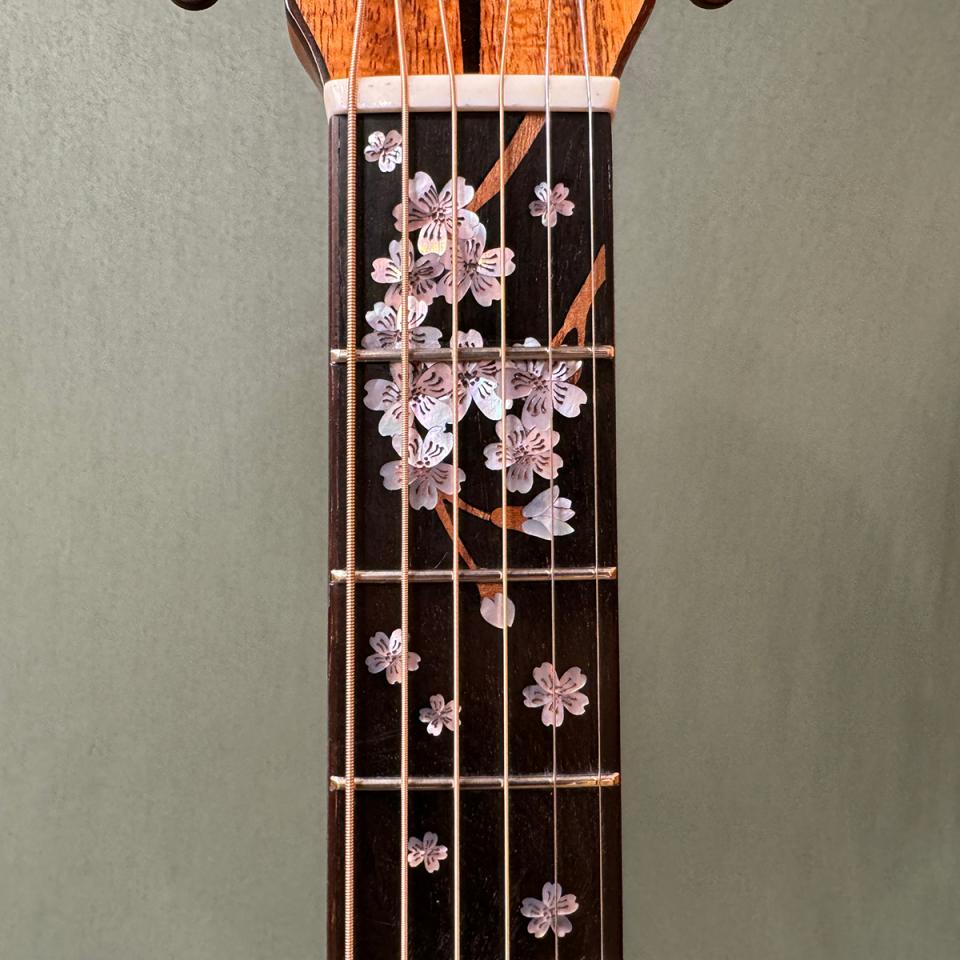 ヤイリギター創立80周年を記念して製作された非売品のデザインを元に、ボディーに使用する木材のタイプのみを変更して、小池氏のみが採用する独特なフォルムの『RF』で作って頂いた、特別な1本です。