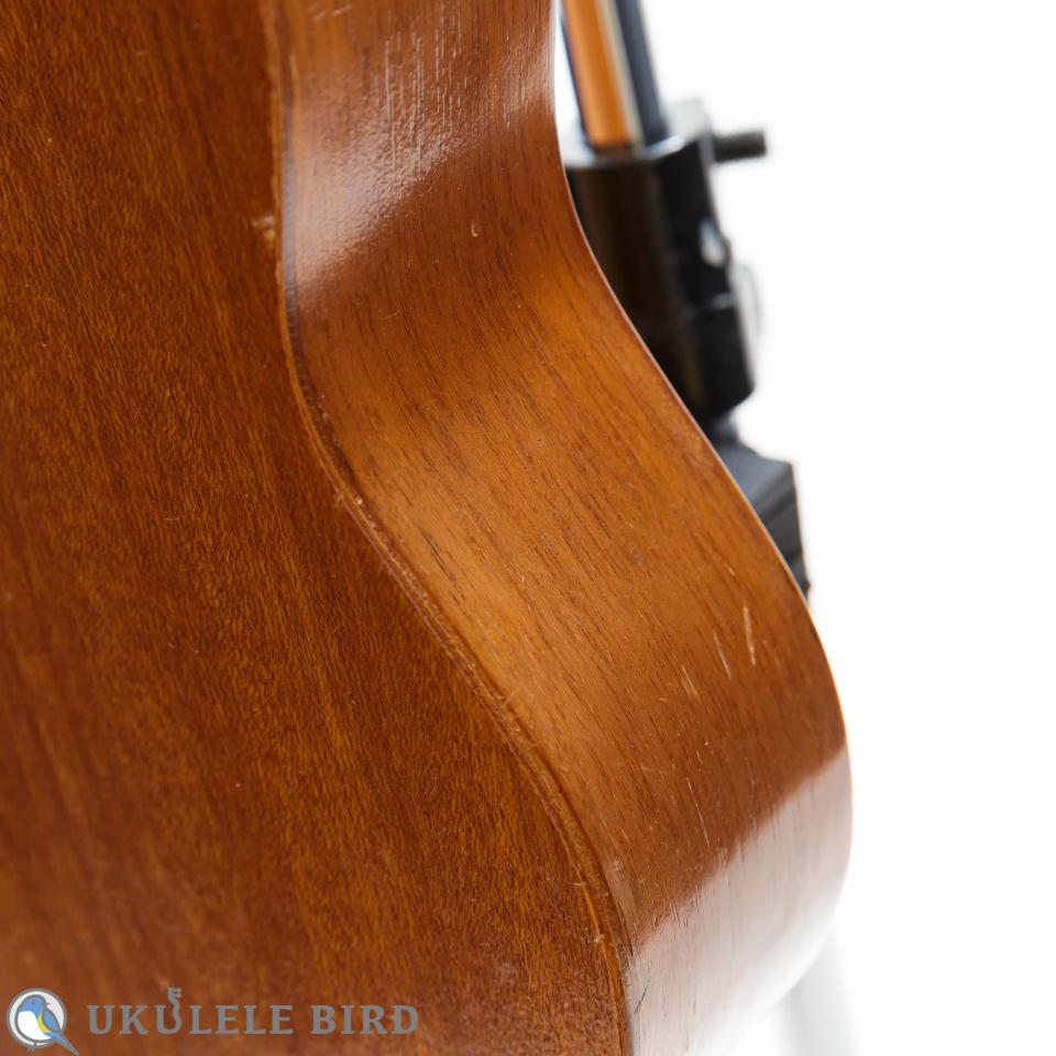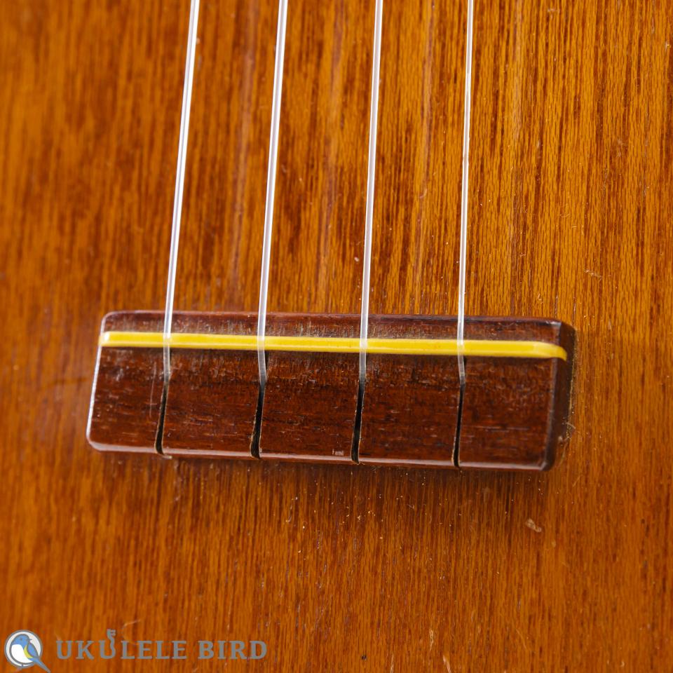 Keikiはハワイ語で「子供」を意味し、Kamaka Keikiはkamaka社がウクレレの裾野を広げるため、マホガニーボディで製作した廉価版のラインナップです。この年代の特徴でもあ丸みのあるボディシェイプ、ローズウッド指板の斜めカット、ゴールドのツヤありラベルなどは本家kamakaと全く変わりません。