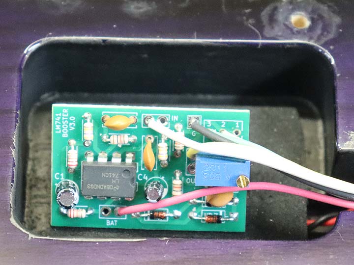 ボディバックにはわずかなバックルキズが見られ、エンド部分の角には擦り傷がいくつか確認出来ます。6弦側サイドのウェスト部分付近には軽微なポツキズと、構えた時に脇で抱える辺りにもポツキズとゴマ粒程のキズが見られます。指板の2Fと3Fの間と指板エンド部分には塗装の剝がれがあります。また指板の所々には演奏による爪痕がいくつか見られます。パーツに関してはヴォリュームとブースターコントロールのポットが交換され、ブースターも社外品へ交換されております。その他ではナットの交換とサドルのイモネジがニッケルメッキの物へ交換されております。メッキパーツに関しては、ブリッジやジャックプレート、ネックプレート、ネジ類に痛みがあります。ペグは綺麗な状態が保たれております。
