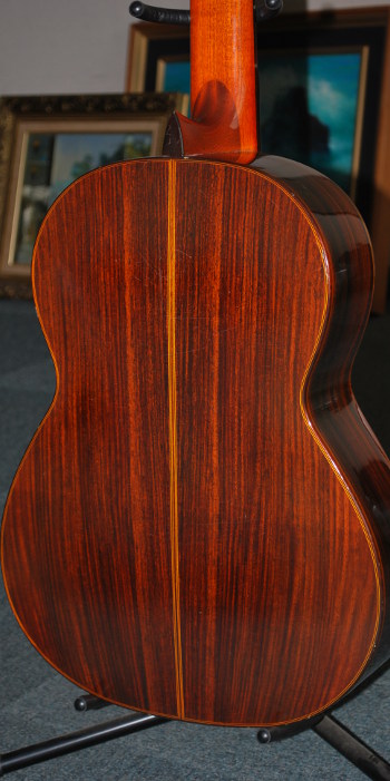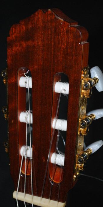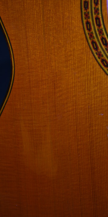 本品はかってのスペイン工房製ギターらしく、少し仕上げのラフなところもあるのだが、その明るさと哀感が交錯したような音色は、昨今流行のよく鳴るが音が無機質な中国製スペインブランドギターにはない個性的な美音である。