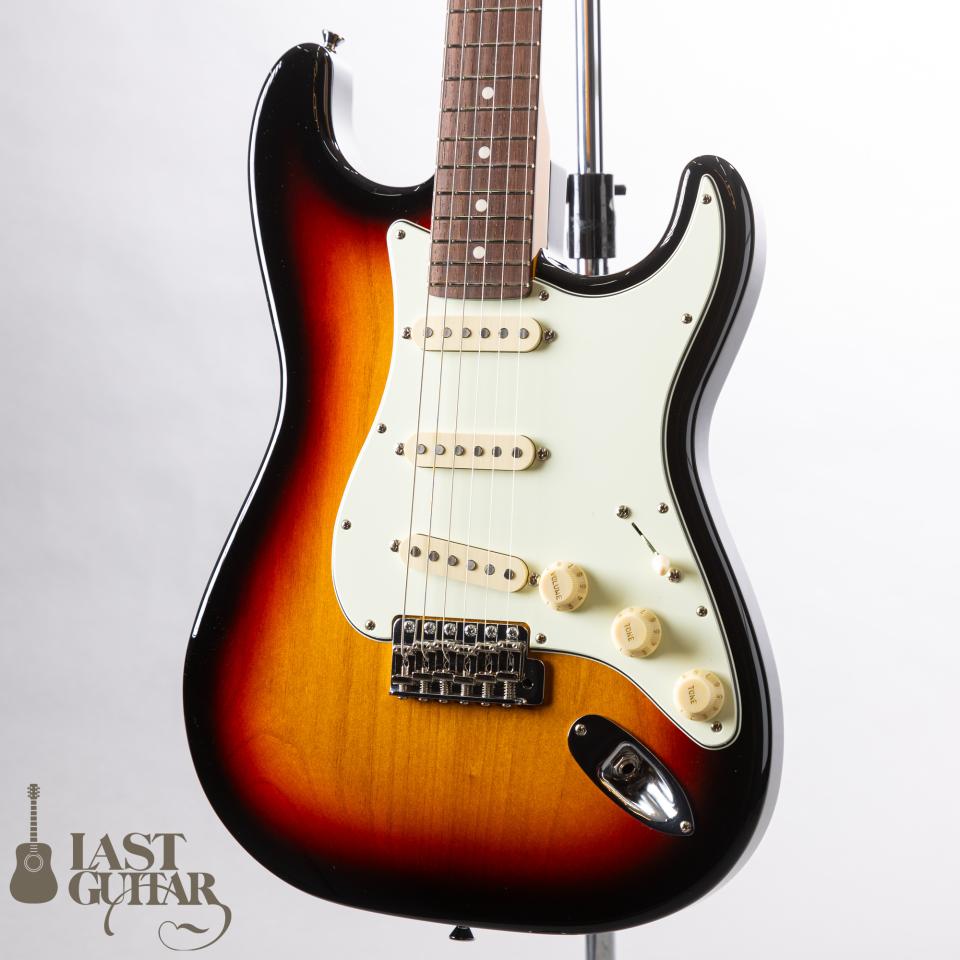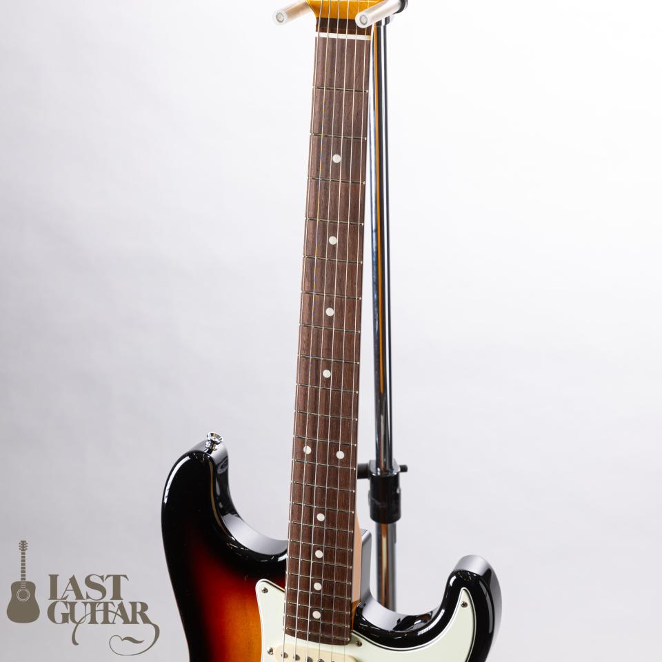 本機は、3トーンサンバーストの現代的要素を取り入れたストラトタイプです。アルダーボディ、メイプルネックの王道ウッドマテリアルです。そして、フィンガーボードには、高級材マダガスカルローズウッドが使用されているのが特徴です。ネックは、程よいグリップ感のラウンドシェイプですごく馴染みやすいです。