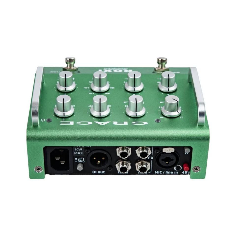 でもROXi の素晴らしさはステージを降りた後も続きます。ROXi はGRACE designが誇る最高品位のマイクプリアンプとプロフェショナルなEQセクションを備えているため、レコーディング用のスタジオマイクプリアンプとして使用する事ができます。その音質は完全なGRACEクオリティです!ミュージシャンが自宅レコーディングを行う場合や、スタジオエンジニアがギターペダルをマイクプリアンプにインサートしたい場合などに、ハイエンドなサウンドを提供できます。