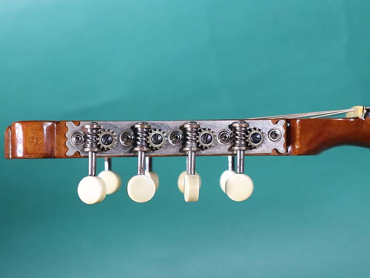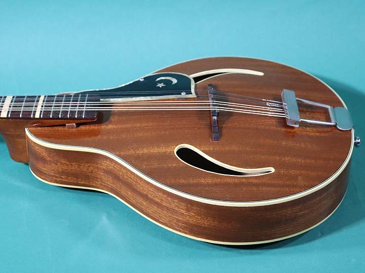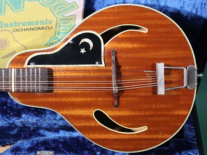 彫刻仕上げのヘッド、月星デザインのピックガードと、見た目に個性があって面白いですが、本格的なブルーグラスマンドリンとしてはあまり使い勝手は良くありません。