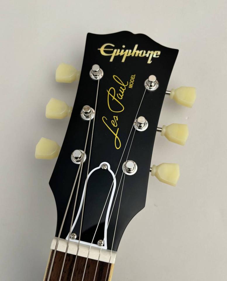 Inspired by Gibson Custom! Gibson同様のヘッドストックを始め、パーツ類を一新しよりクオリティを高めたEpiphone製Les Paul! Gibson Custombucker搭載という本気具合です。軽量の個体!