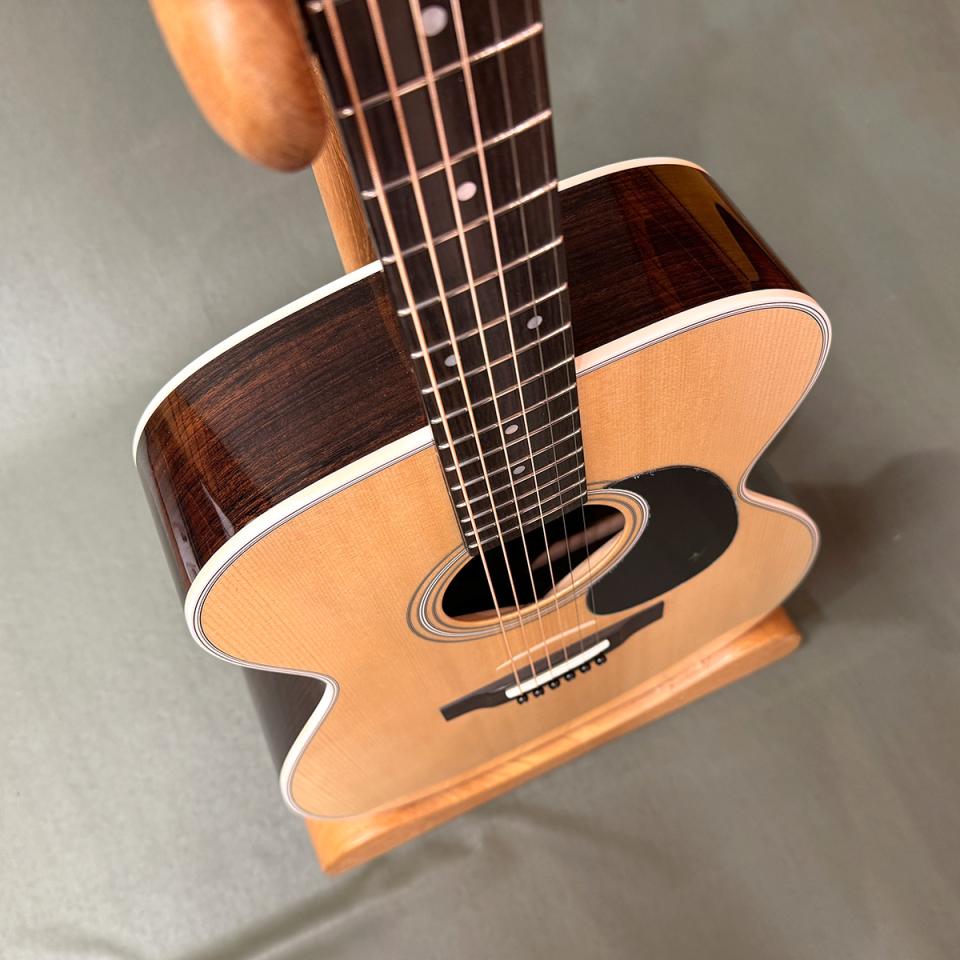 ブックマークする 値下げ通知に登録繊細で明るく、レスポンスの早いはっきりとしたサウンドの00028。全面単板にて組まれる国産ハンドメイドでは最安値を維持。42mmのネック幅と心地よくトライアングルに削られたネックシェイプが、比較的手の小さい方々にも弾きやすいと人気です。