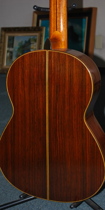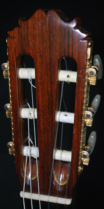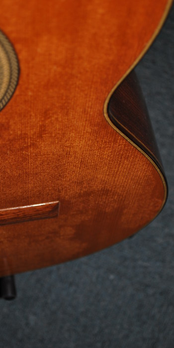 河村ギターといえば、近年は弦長620㎜、630㎜、…等々のショートスケールのギター製作も多いが、本器は650㎜の標準スケールである。
