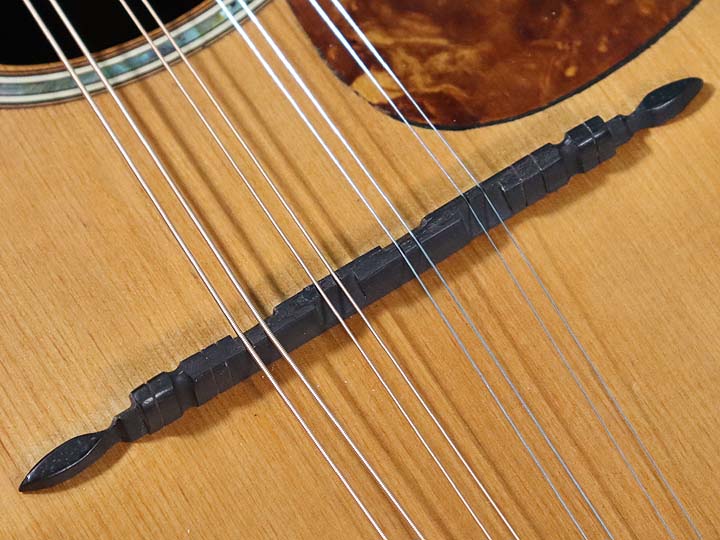ブリッジはオリジナルエボニー製、ペグもオリジナルで動作はまだ問題ありません。ナットはオリジナル象牙製、フレットはリフレット済みです。