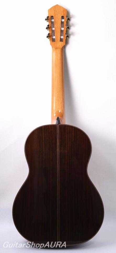 全体は美しいセラック塗装仕上げ。ネック形状は普通の厚みのDシェイプ。弦高値は3.2/3.5mm(1弦/6弦 12フレット)で、サドルは2.0mmの調整余地があります。糸巻はRubner 製。繊細かつ精緻なロゼッタデザインはスペインの伝統的なタイル Azulejos をモチーフにしたもの。