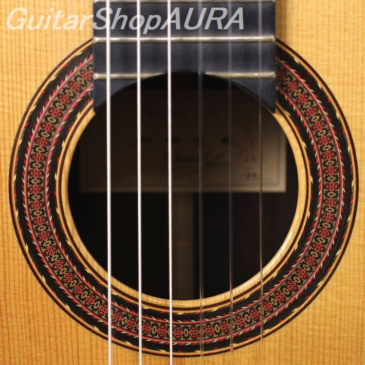 2000年代以降の氏はいわばドイツ/スペイン的な音響を自身の嗜好の中に慎ましく着地させたような冴えた響きの楽器を作っていましたが、1999年製の本作では柔らかな、エコー感のある響きが特徴となっています。低音が全体を包み込むような鳴り方で、迫力というよりもやはり落ち着いた佇まいなのは氏の性質によるものでしょうか、独特の渋さをもった一本となっています。