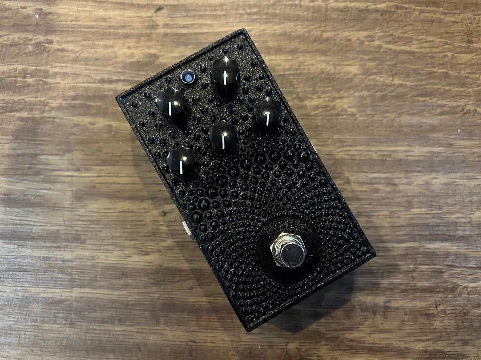 岩手発のKGR HARMONYのドライブペダルあられです!ケースに重厚な南部鉄器を採用し、モデル名の由来にもなっている、南部鉄器の代表的なあられ状のデザインを前面にあしらったドライブペダル!重さはありますが、サウンドに及ぼす影響も興味深いものがあります。元箱つき!