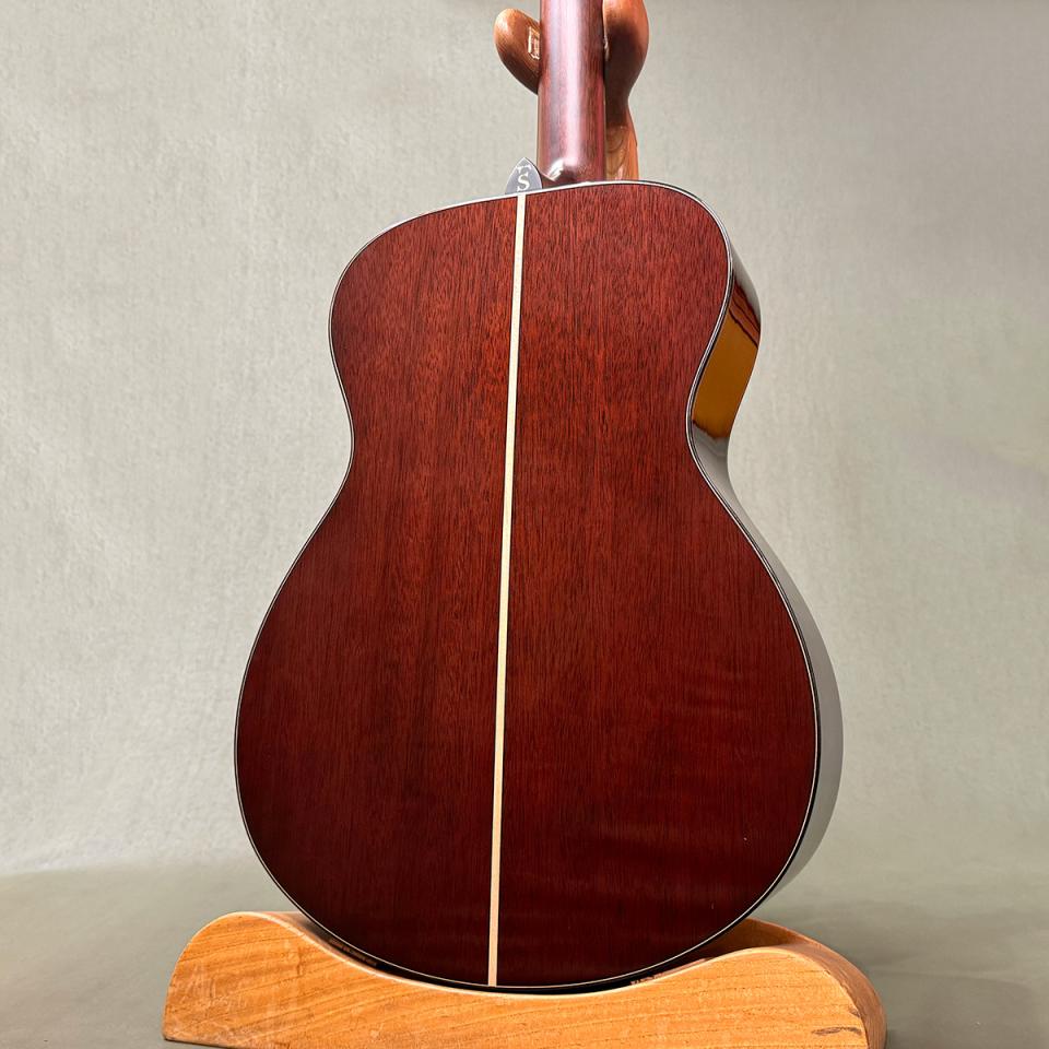 アディロンダック特有の強いアタック・高いレスポンス・豊かな倍音が、アフリカンマホガニーの温かさと融合し、弾き語り・ソロギターのどちらにも高い表現力を発揮します。