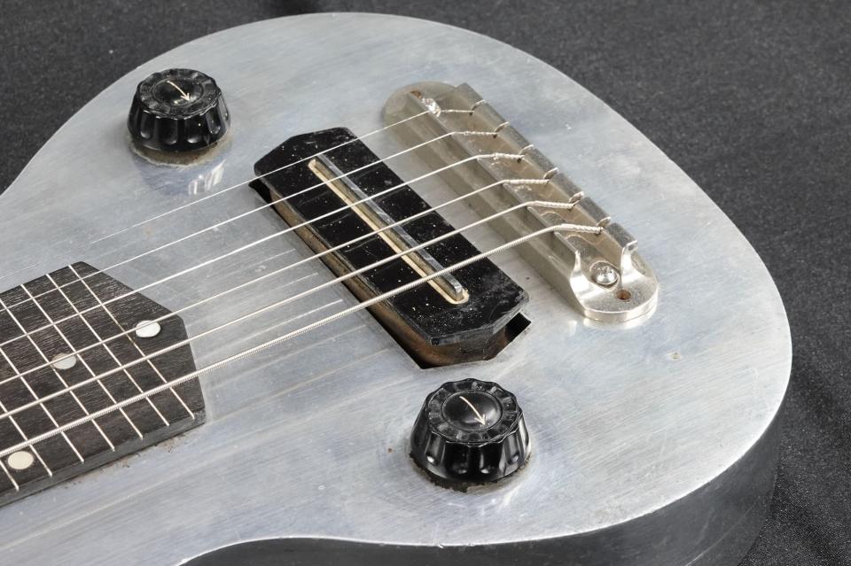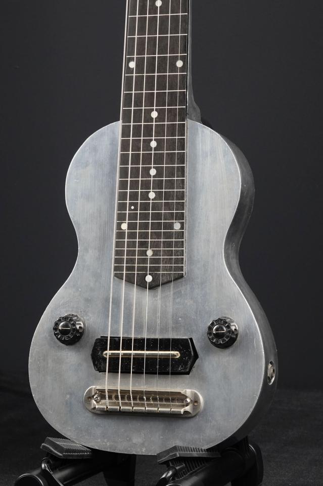 アルミニウム素材の、現代的なデザインの、スティールギターで、ギターアンプ とセットで、当時150ドルで販売されました。