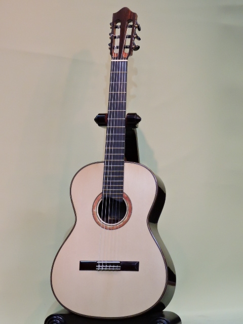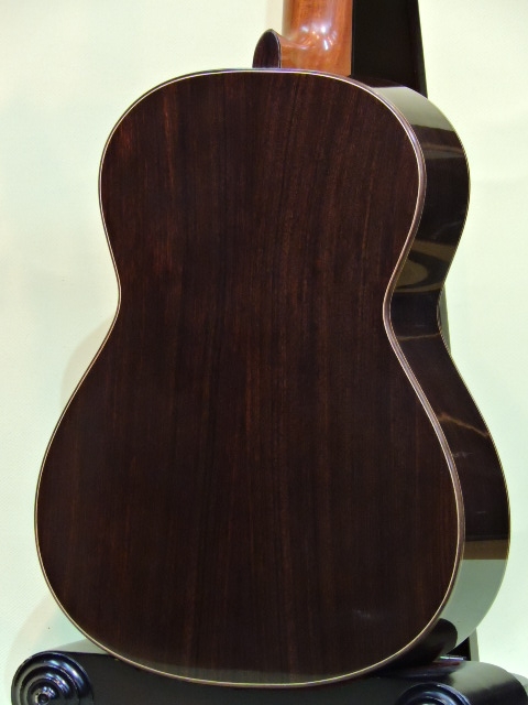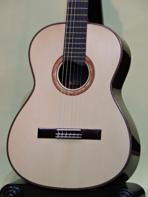 ヨンゲの以前の作風は確かにE.メンヒの名残を感じさせましたが、最近は伝統に拘らずWトップのギターを製作するなど、常にひと所に安住しない研究熱心な姿勢を貫いています。そのためか過去に5本程弊店に入荷したヨンゲの作品はどれも特性が異なっていました。