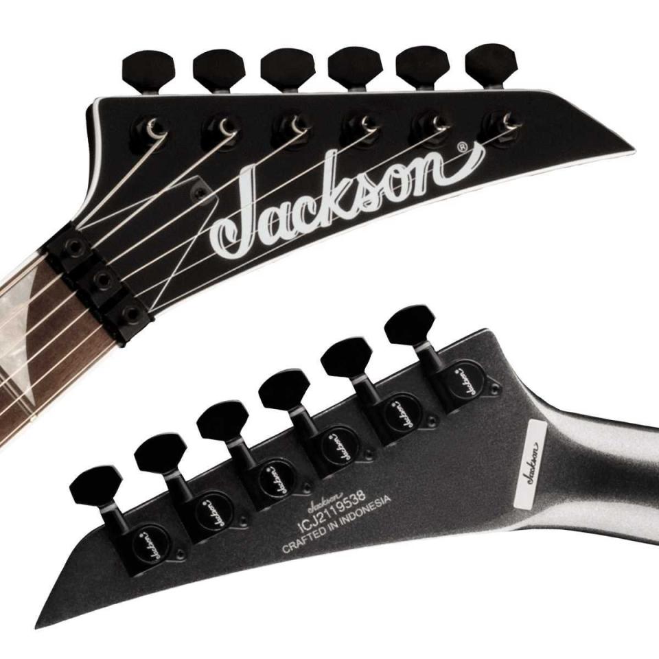 Jackson(ジャクソン):1980年代、シャーベル社のクラフトマンだったグローヴァー・ジャクソンが、ギタリスト、ランディ・ローズの意見を元に製作したカスタムギターを「ジャクソン」ギターとして発売。当時のLAメタルの隆盛を背景にアメリカを中心にブレイクし、トップブランドに。主力はSoloist(SL), Dinky(DK),King V(KV),Kelly(KE)等。(Jackson/ジャクソンのキーワード検索結果はこちら)