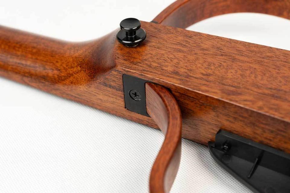 NBSGベースモデル。フレームを外せばコンパクトに持ち運び可能。アンプに繋げば、リアルなアコースティックサウンド、加えてリバーブやディレイなどエフェクターを内蔵。しかもワイヤレスで、アンプと接続可能。Bluetoothでスマホとも連携し、さらに奥深い機能もスマホからコントロールできる。