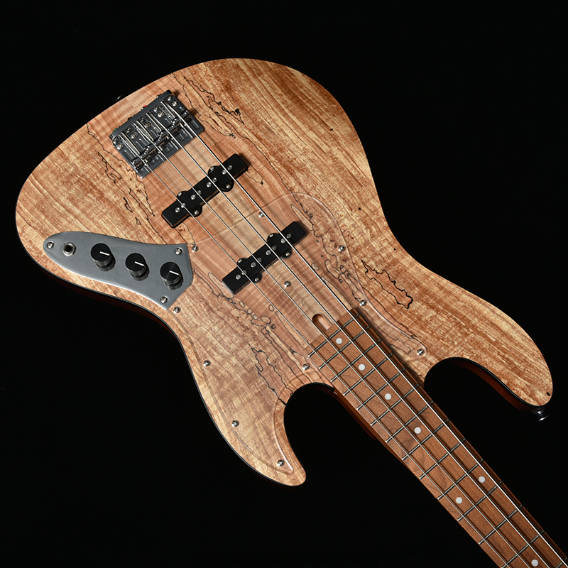 本機最大の特徴は、トップ材に使用される「スポルテッドメイプル」になります。「スポルテッド(Spalted)」とは、自然の中で細菌などによって木材の腐朽(ふきゅう)が進んだ結果、特徴的な模様を持つ杢目が生まれた木材に使用される言葉です。工芸品の装飾に使われることも多く、王道のフレイムやキルト杢とは一味違った雰囲気を感じさせます。