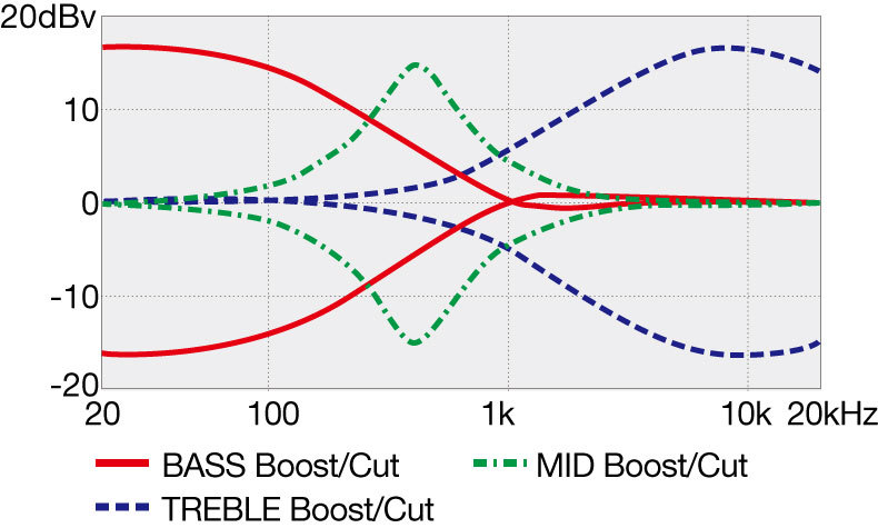 High/Mid/Low 3バンドのイコライジングが可能なうえ、シングル/ハムバッキング/ベース・エンハンスド・シングルの