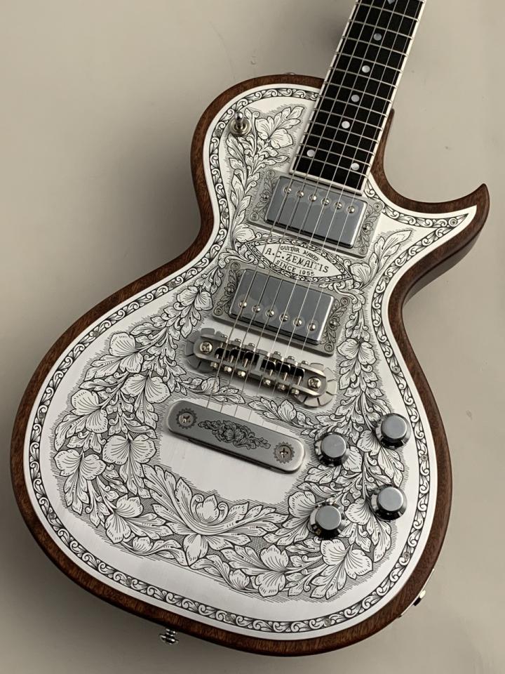 ZEMAITIS(ゼマティス/ゼマイティス):トニー・ゼマティスが1955年に作った独自デザインのエレクトリックギターから始まるイギリスのブランドで、彫刻師ダニー・オブライエンによる彫金が特徴。トニーの他界後は神田商会のもとで再興され、主要モデルはMF(メタルフロント),PF(パールフロント,DF(ディスクフロント),SUPERIOR(スーペリア)など。(ZEMAITIS/ゼマティス/ゼマイティスのキーワード検索結果はこちら)