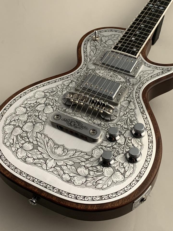 ボディー・トップのアルミ合金のプレートにゼマイティスらしいリーフ柄の彫金装飾を全面に加え、伝統を示す「A.C.ZEMAITIS SINCE 1955」の文字が刻まれたデザインなどクラシックなルックスが特徴です。