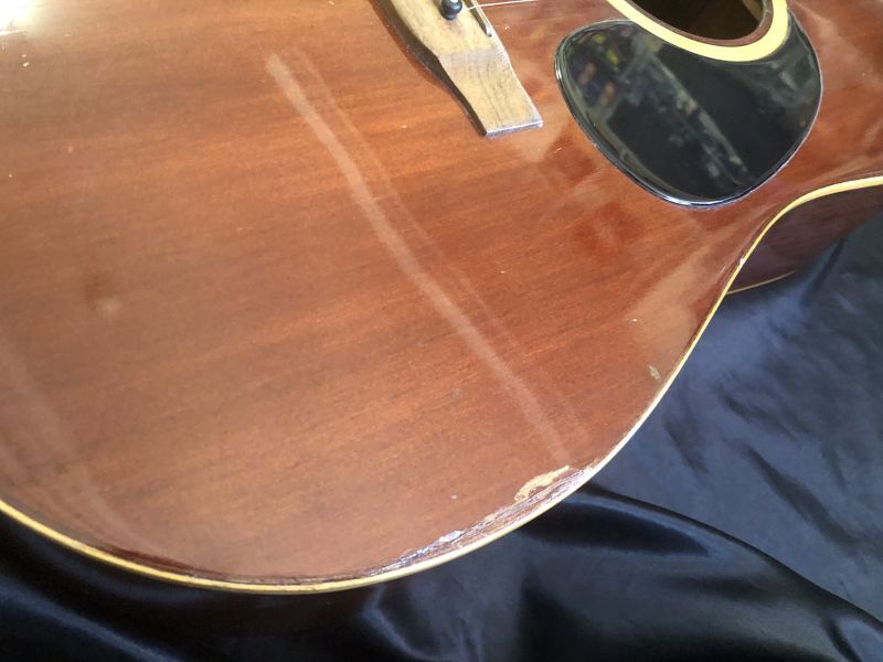 打痕キズなど見られますが、フレットも6〜7割ほど残っており、