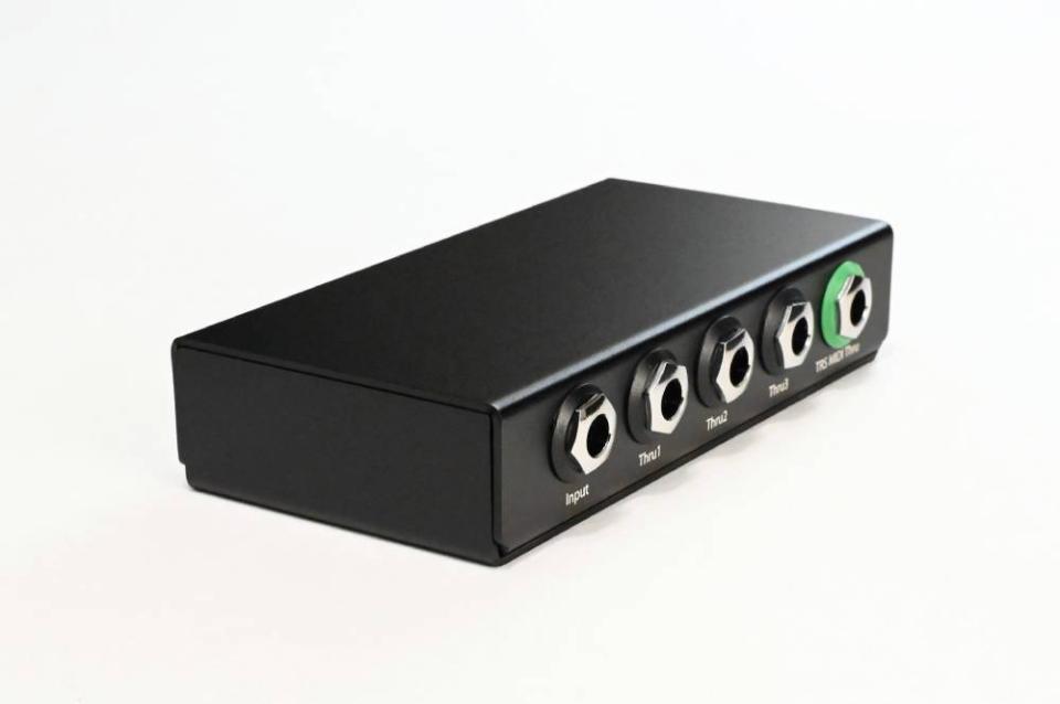 音声信号用として、Input端子と3つのThru端子を備えており、3つのThruはOutputに割り当て使用するのはもちろんのこと、TRSプラグを使用したアンプのコントロール信号(ラッチ信号)の接続にも対応。