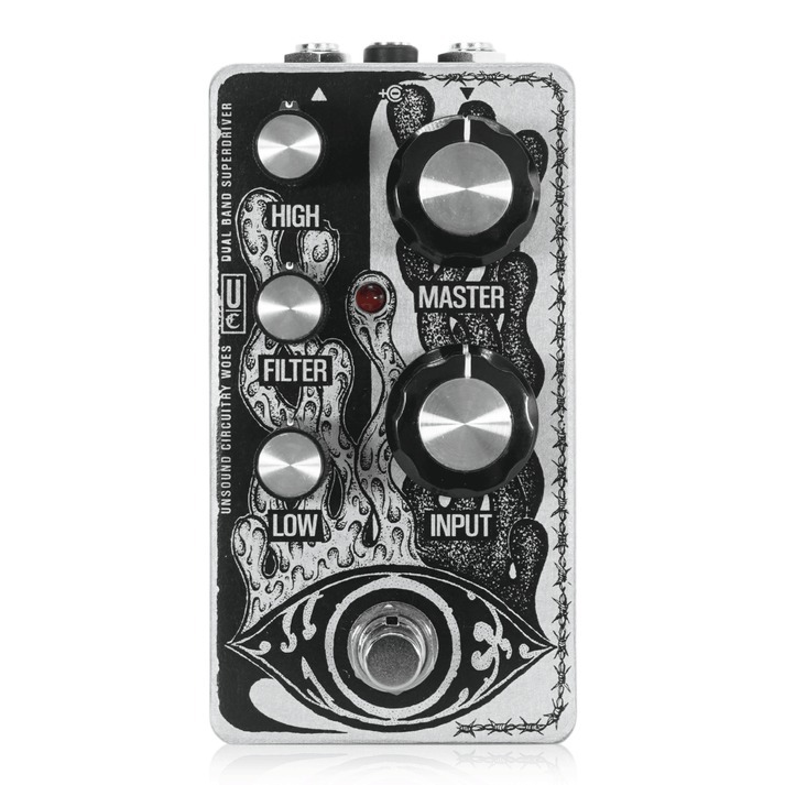 WOESデュアルバンドスーパードライバーは、ブーストステージの前に独立したゲインコントロールを持つ、2つのパラレルドライブ回路を備えたディスクリートアナログペダルです。