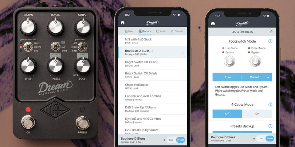 UAFX Control モバイル・アプリと組み合わせて使うことで、Dream 65 はさらに快適なものとなります。カスタムのアーティスト・トーンのダウンロード、プリセットの呼び出しと保存 ─ 史上最高のアメリカン・チューブアンプを掘り下げましょう。