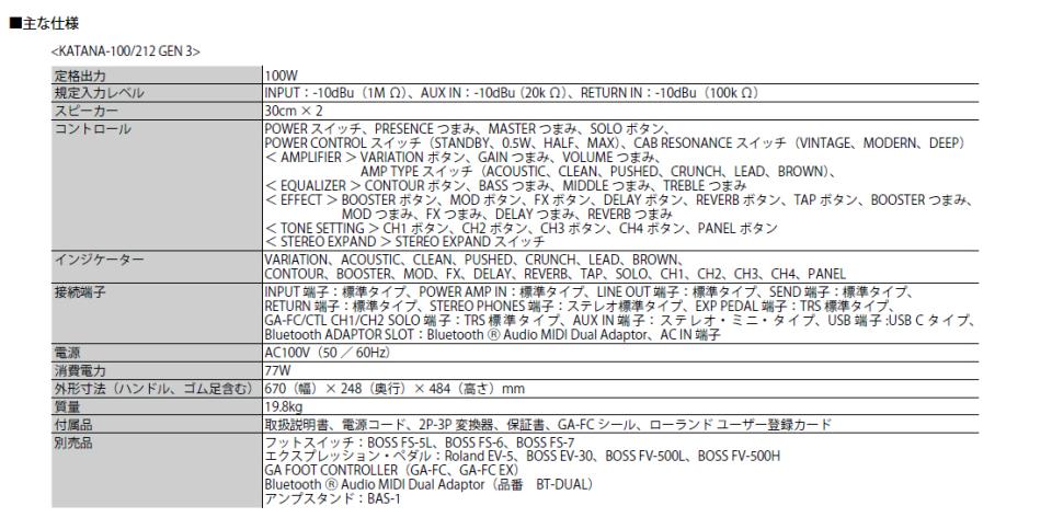 | 型番・モデル | KATANA-100/212 GEN 3 Guitar Amplifier【オンラインストア限定】 |
