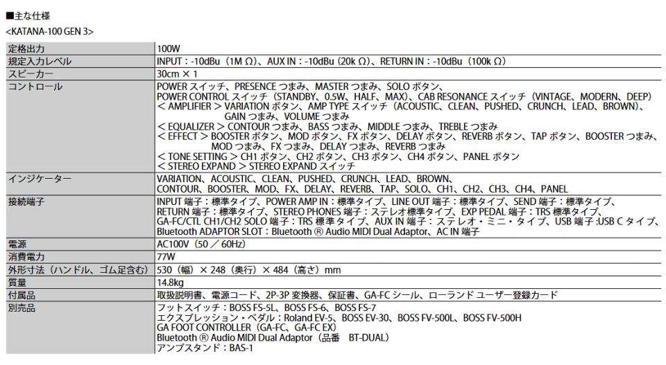 | 型番・モデル | KATANA-100 GEN 3 Guitar Amplifier【オンラインストア限定】 |