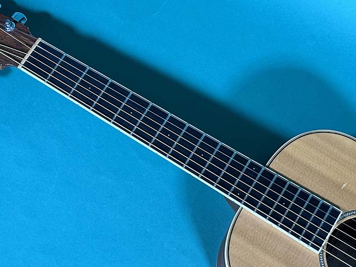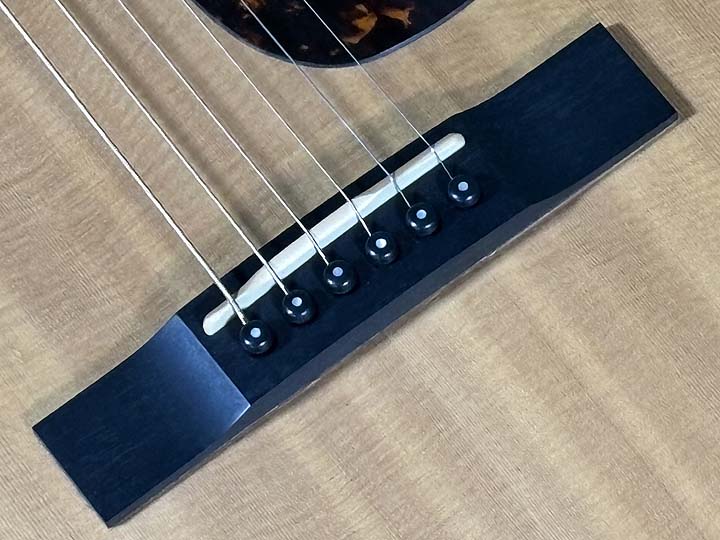 フレットの山も充分に残っています。サドルしろも充分にあり、ロッドの効きしろも余裕があります。12フレット上の弦高は6弦:2.1mm、1弦:1.6mm、演奏性良くセットされていますので、当面はメンテナンスフリーでお使い頂けます。