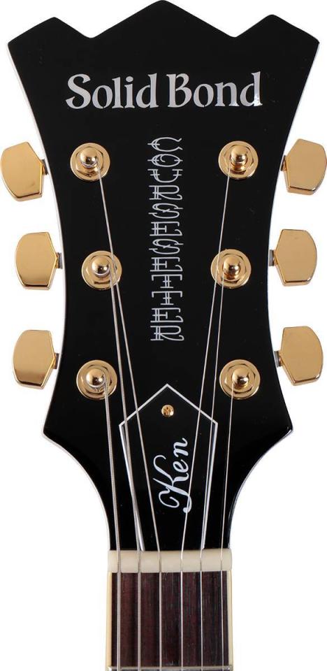 【Coursesetter】とは横山 健による造語で「自分の進む進路 (コース)を決めて進んでいく (セット)、ギタープレイの道に踏み込んだんだから気合いを入れて進んでいこう!もう後戻りできないぜ!」という意味が込められています。ロットカバーのKenのロゴ、Coursesetterのロゴは横山 健デザインのタトゥーロゴを採用しています。Soild Bondと横山 健とでデザインした存在感のあるヘッドストック、特徴あるスペックとしてサイドジャック、ヘッド裏のボリュート、そしてマスターヴォリュームのノブのメモリは「フルテンを振り切る、ぶっちぎる!!」という意味を込め0?11になっております。コースセッターのネーミングから仕様まで、まさにパンク精神に溢れる1本です。
