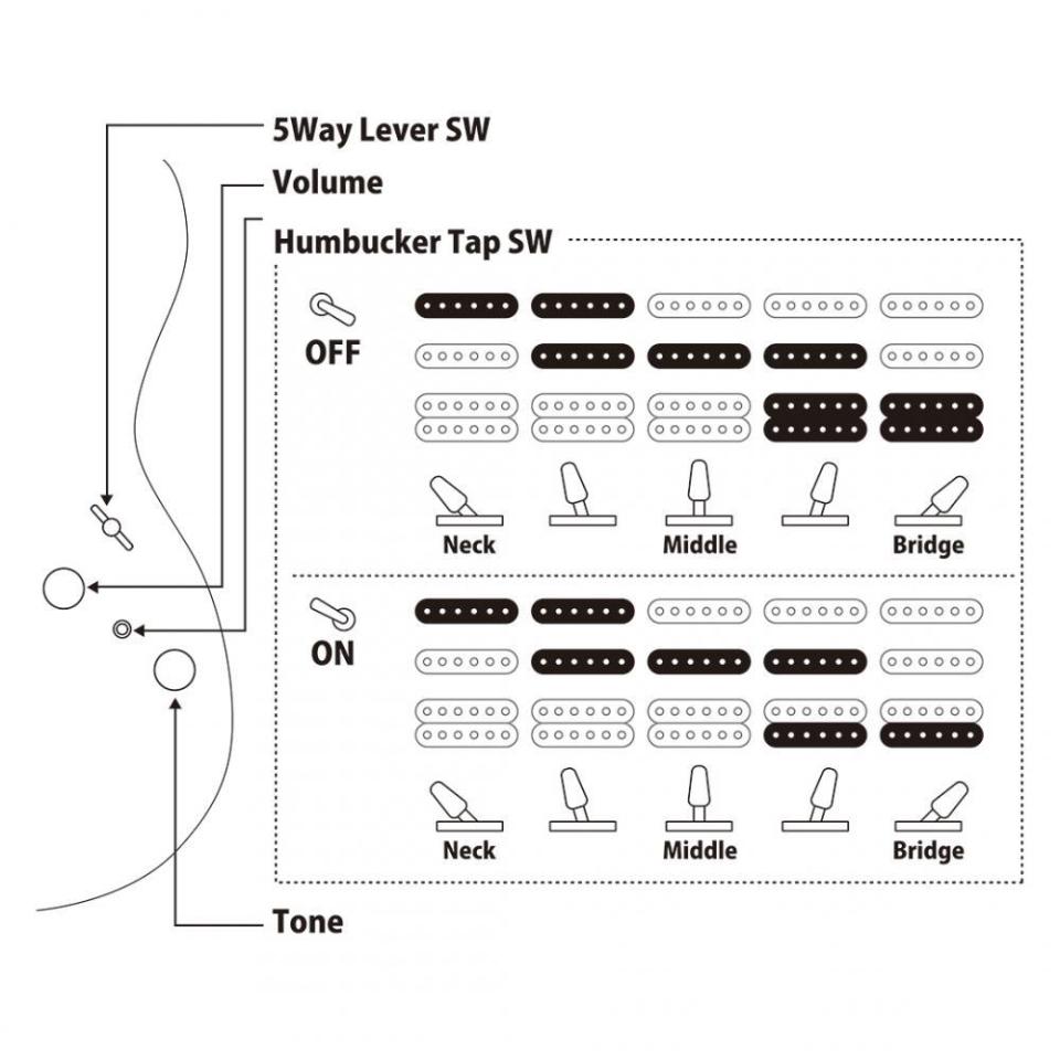 Controls:1Volume, 1Tone, 5Way Lever SW, Coil Tap Mini SW