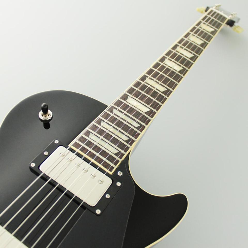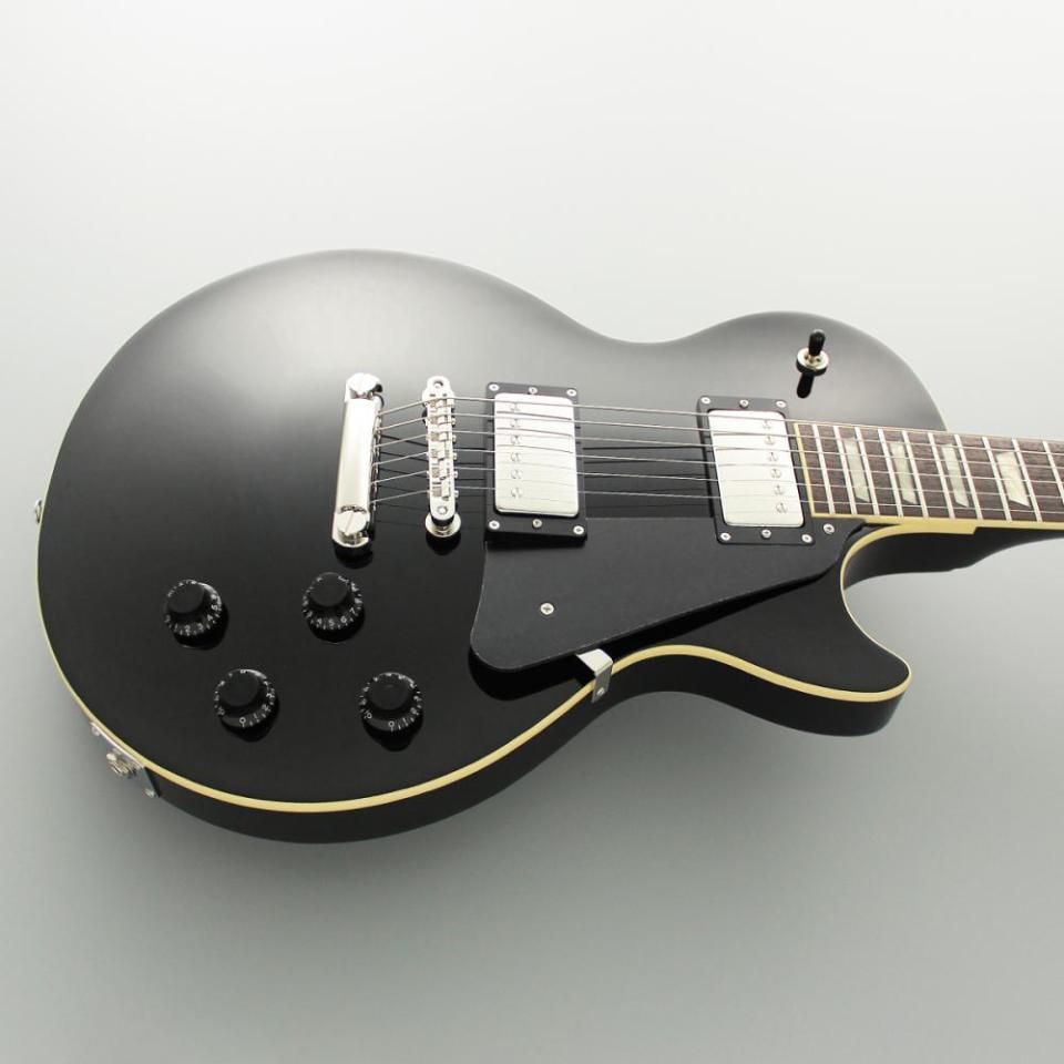 当モデルは、メイプルトップ・マホガニーバックボディ、ローズウッド指板、ブラックカラーという組み合わせ。