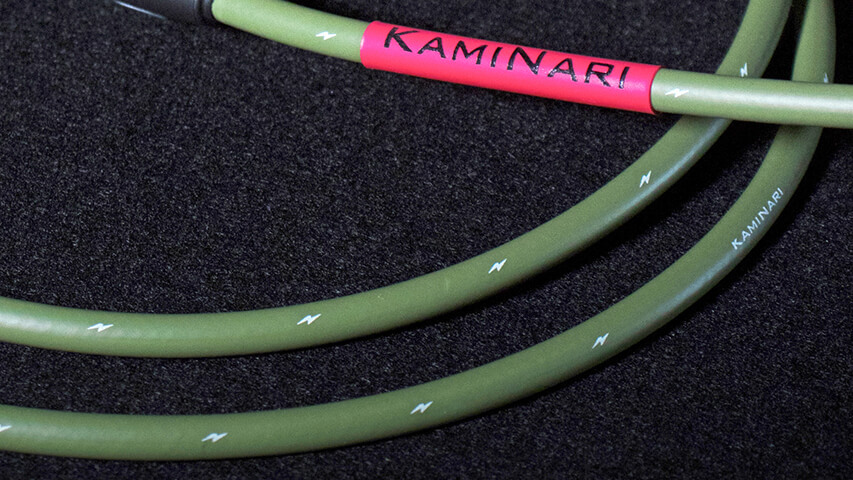 ベース専用ケーブルにありがちな低音域を過度に強調する方法では、バンドアンサンブルの中ではサウンドの輪郭がぼやけてしまう傾向が見られた。そこでKAMINARI GUITARSでは、中音域をタイトにすることで、エレクトリックベース本来の自然な低音域と高音域のパワー感が生まれることに着目。無酸素銅線と錫メッキ銅線を独自配列することにより、程よい低音を含んだ存在感のあるベースサウンドを引き出すことに成功した。また、シースにはアクセントとして小さな稲妻マークがあしらわれている。特製ケーブルポーチが付属。