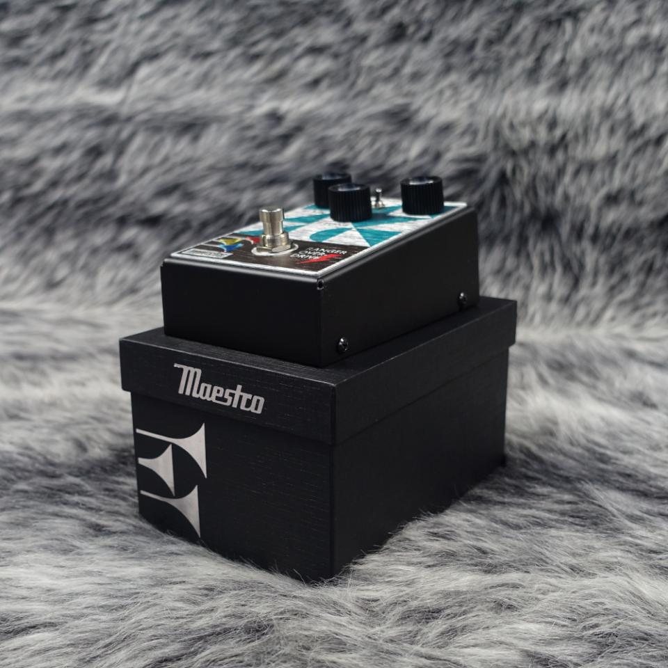 トゥルーバイパス用フットスイッチをオンにすると、マエストロロゴ上部にあるビューグルLEDライトが点灯するので、エフェクターのアクティブ状態をいつでも確認できます。