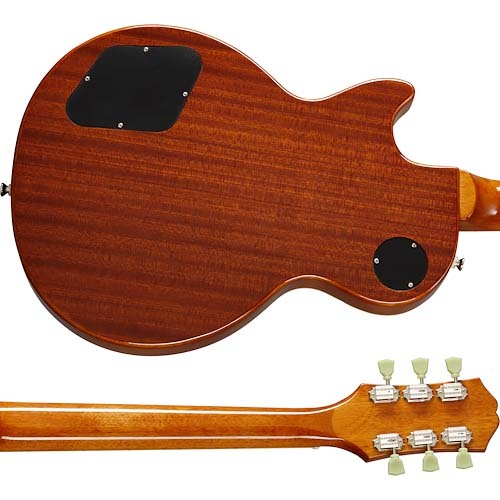 グロス仕上げのマホガニー・ボディにメイプルトップの材構成で、ロング・ネック・テノン仕様でジョイントされた50sシェイプ・マホガニー・ネック、クラシカルなディッシュ・インレイが施されたインディアン・ローレル指板、新開発のヴィンテージ・デラックス・チューナー、定評あるエピフォンProBuckerハムバッカー、ダイヤル・ポインタ付きのゴールド・トップハット・ノブなど、充実の仕様群を誇ります。