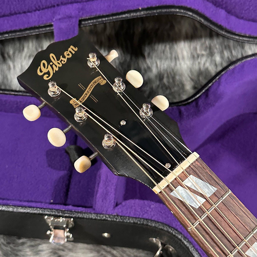 何気なく第一ポジションのコードを爪弾いたりブルーズの定石フレーズを弾くだけで、サザン・ジャンボの汎用性の高さをご納得いただけるでしょう。ヘッドストック上で“Only a Gibson is Good Enough”と書かれたバナーを誇らしく掲げつつ、オープン・スロット・ブリッジ、ボーン・サドル(ナット)、1.77インチと幅広なナット幅など、往年の仕様の数々が採用されており、本モデルの魅力が一層高められています。