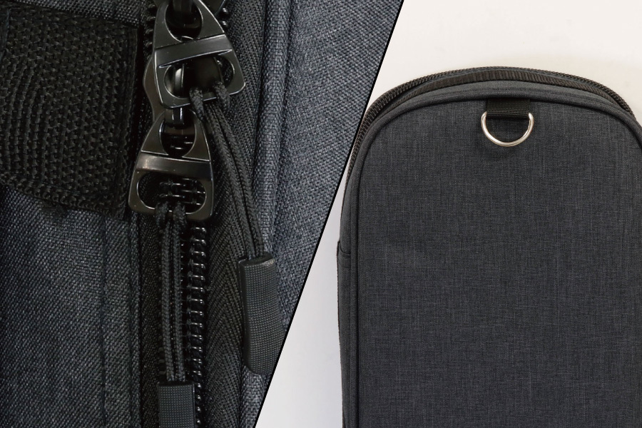 滑りにくいチャックつまみを採用し開閉時のストレスを軽減。フックなどにぶら下げて保管できるように吊り下げ用のリングも搭載。