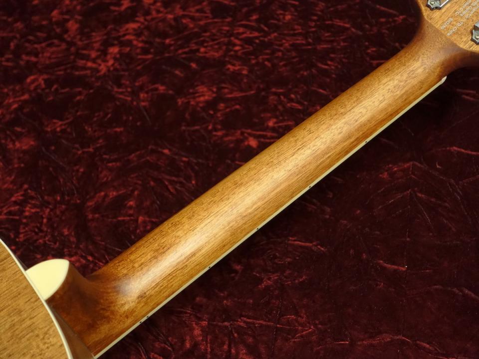 大人から子供まで抱えやすいパーラーサイズ。ソリッドマホガニートップ、マホガニーサイド&バックのボディにマホガニーネックをセットしたウッドマテリアル。クリームカラーのヘリンボーンバインディングとヴィンテージマホガニーフィニッシュがマッチした1本。小ぶりなサイズながらしっかりと生音を楽しめるモデルです。
